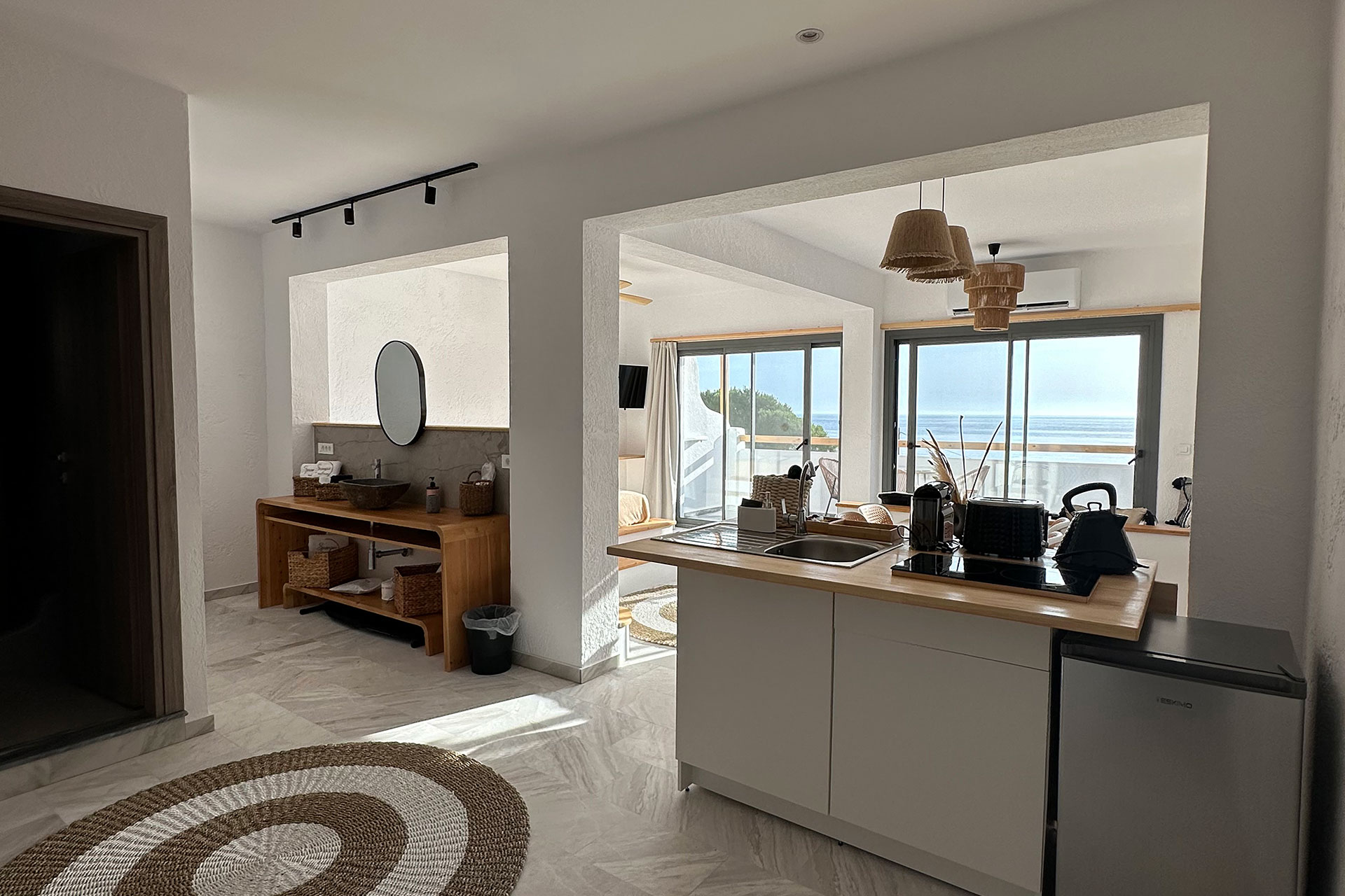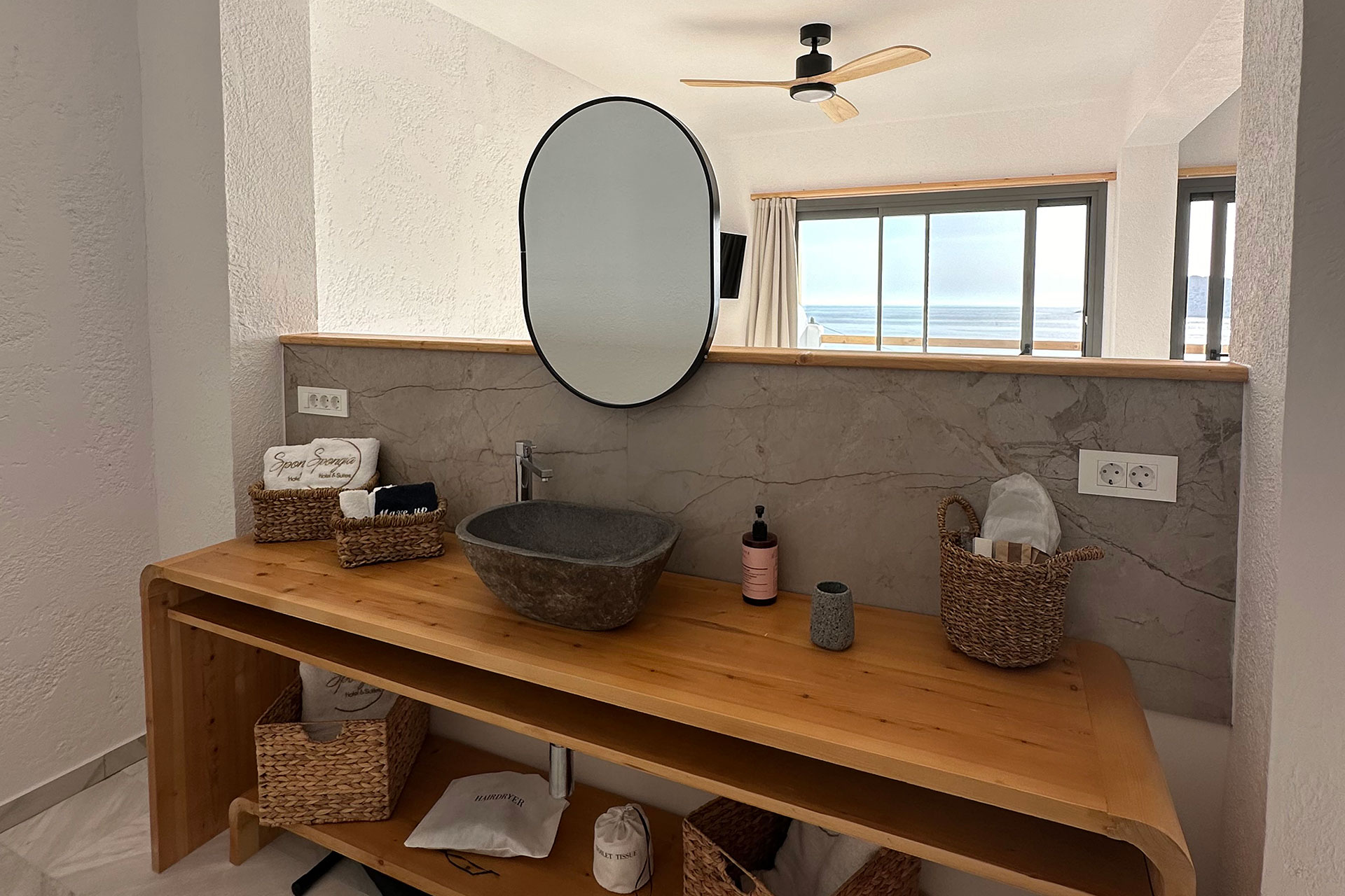 Φροντίσαμε να έχετε Wi-Fi υψηλής ταχύτητας, Smart TV, air condition (ζεστό/κρύο), ανεμιστήρα, γραφείο με USB-C, θύρα Ethernet, σίδερο, σιδερώστρα, τηλέφωνο, χρηματοκιβώτιο και μόνιμη παροχή φιλτραρισμένου πόσιμου νερού.